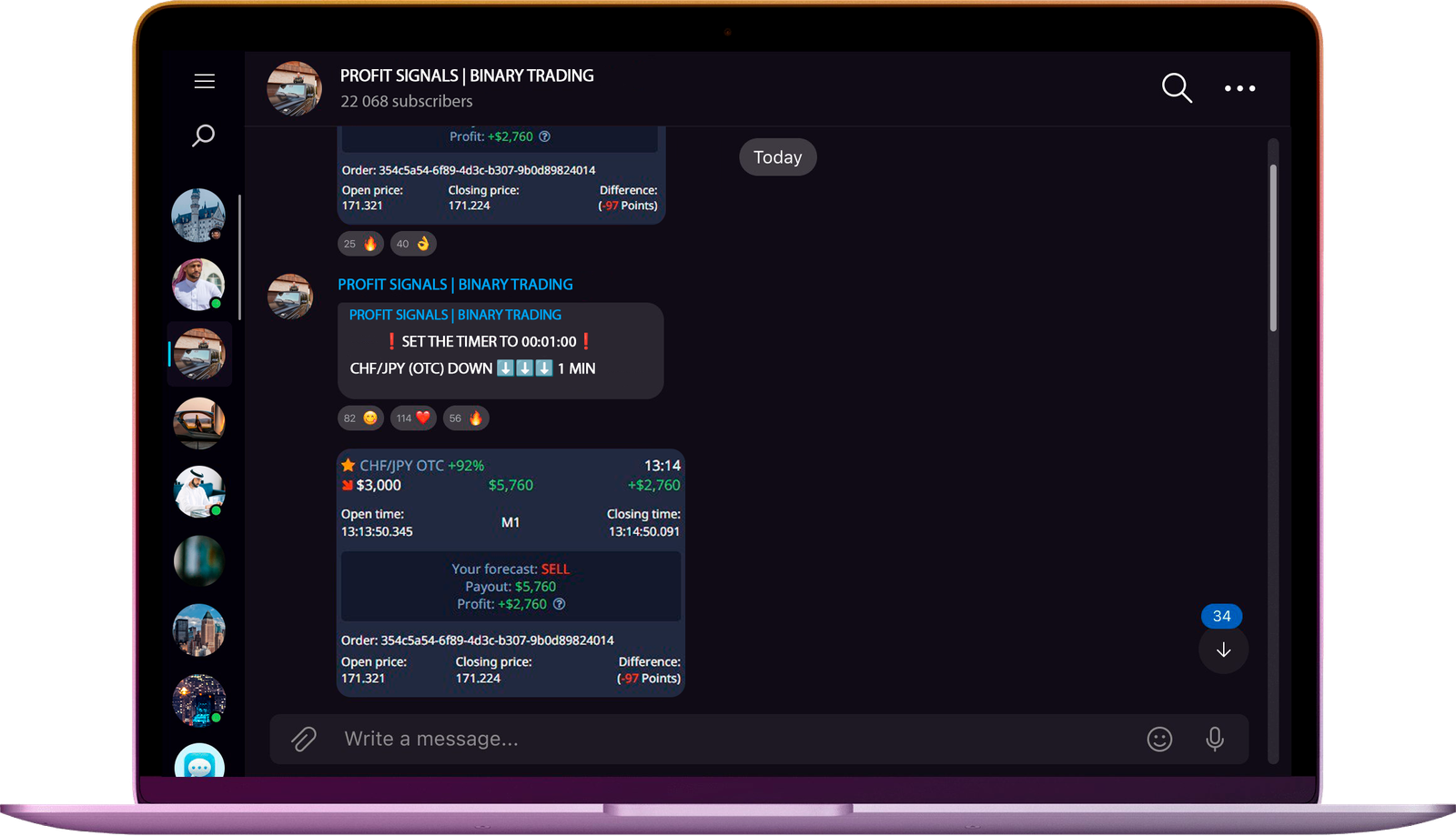 Don't worry, in a few days you will be able to understand everything and start making your first money! You will be able to trade with my community of 14,000 members. Receive signals, enter trades and take profits!